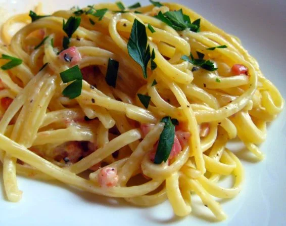 - To begin with this carbonara recipe, boil the spaghetti in a pot of water until it is done. Drain the pasta well and then toss it with one tablespoon of olive oil. Set it aside.